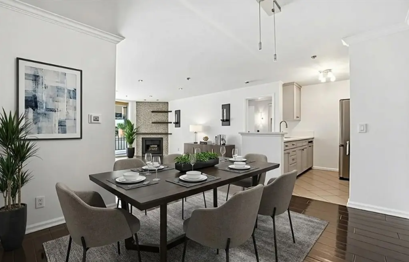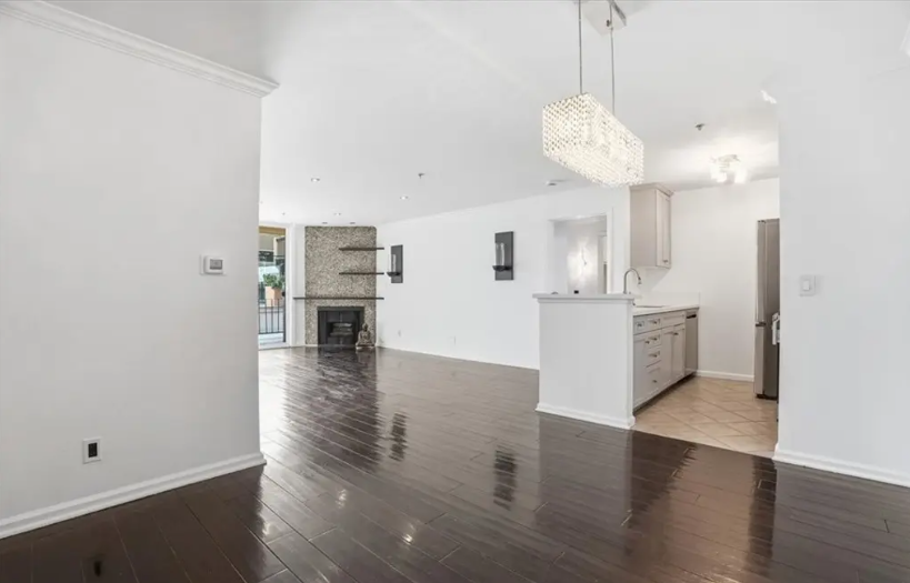 室内为开放式通透设计,全新升级厨房配置定制橱柜与石英石台面,搭配高品质电器;全屋红木实木地板、精致皇冠线条与定制灯光系统,呈现克制而高级的居住质感。